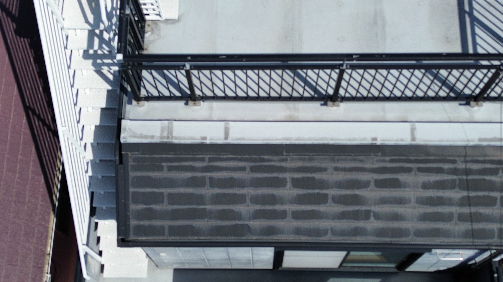 既存塗膜の脆弱部は捲って、左官下地調整、骨材入りの下塗りでパターン調整、全体を浸透性の高いシーラーとフィラーの2工程での下塗りを行わせていただきました。