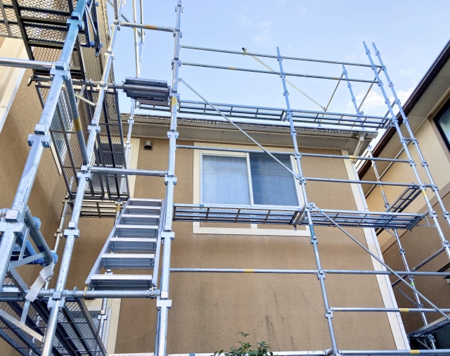 足場を組む作業は、騒音や振動が大きいため、窓を開けておくことはできません。