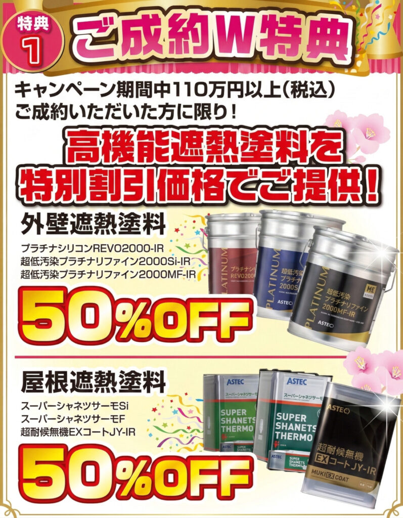 キャンペーン期間中、対象の高機能遮熱塗料を特別割引価格でご提供いたします。