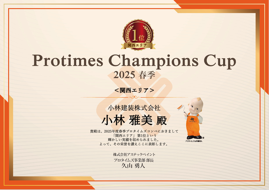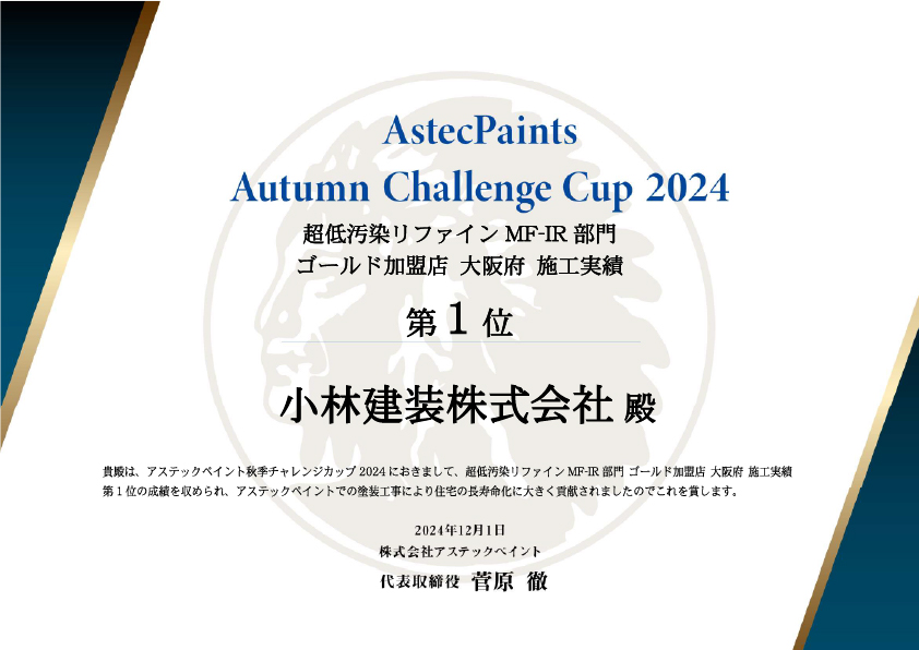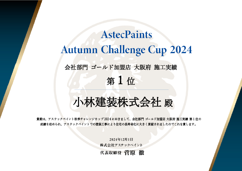 2024年秋季チャレンジカップ 会社部門 施工実績 大阪1位