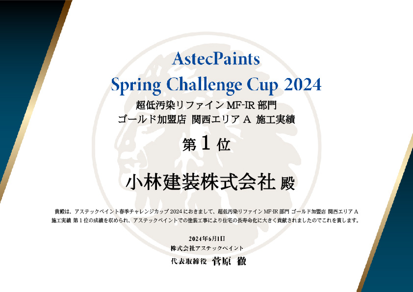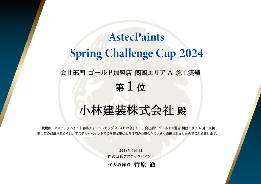 2024年秋季チャレンジカップ 会社部門 施工実績 大阪1位