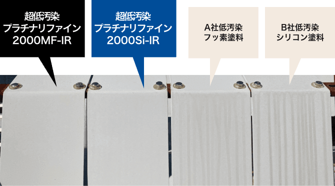 超低汚染プラチナリファインシリーズは美しさが長く続くため、汚れによる熱の吸収を抑制。一般的な遮熱塗料に比べて長く遮熱効果を発揮します。
