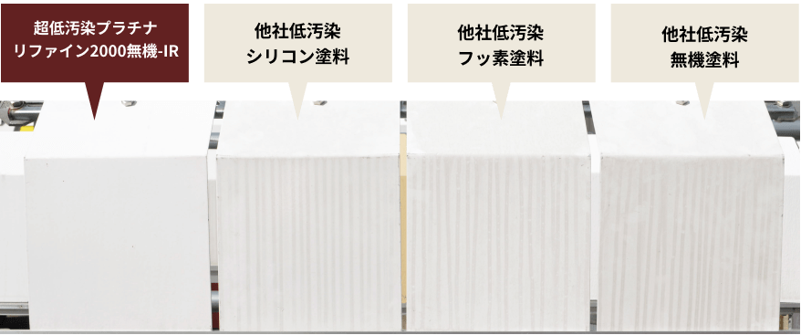 無機成分の配合により緻密で強靭な塗膜を形成。他社と比較しても、汚れの付着・定着を抑え、長期間にわたり、美観を維持します。